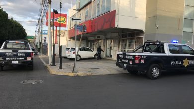 Policías del municipio de Querétaro realizan la denuncia correspondiente, vía tableta electrónica, tras a un robo a comercio (SuperQ) en…