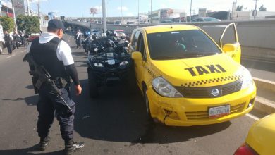 Una unidad de taxi choco contra una motopatrulla en el Blvd. Bernardo Quintana a la altura de la colonia de…