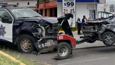 Choca patrulla de la municipal de Corregidora con camioneta particular, resultó un elemento lesionado
