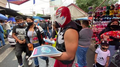 Luchadores entregan cubrebocas en inmediaciones del Mercado del Tepe