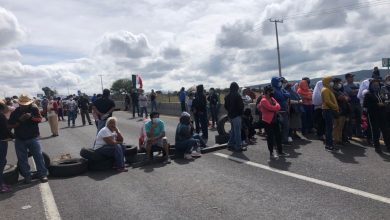 Habitantes de la localidad de San Juan El Llanito, Apaseo El Alto, Guanajuato se manifiestan sobre la Celaya libre, en…