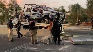 Patrulla de El Marqués choca contra barra de contención sobre la estatal 200