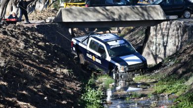 Cayó una patrulla de la policía municipal al dren ubicado en el acceso IV