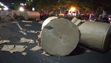 La noche de este domingo volcó un tráiler que transportaba rollos de papel, sobre Paseo de la República a la…