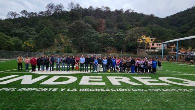 Titular de SEDESOQ entrega cancha de fútbol 11 en Pinal de Amoles
