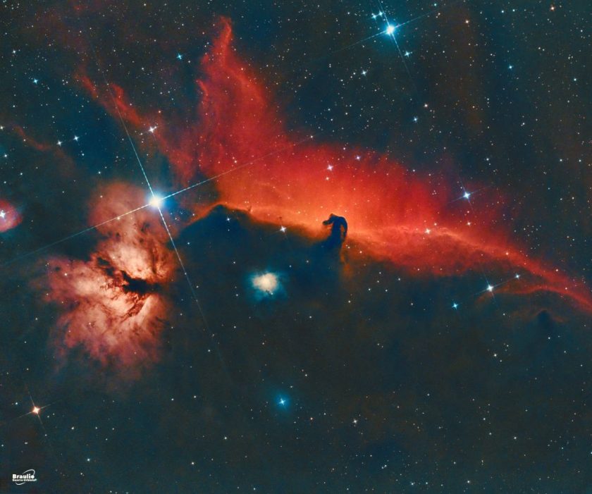 Les comparto esta Astrofotografía que hice de la Nebulosa Cabeza de Caballo NGC 434. Se encuentra a 1500 años luz de la Tierra y es una nube de gas fría que se ubica justo abajo y rondando la estrella ¡Alnitak! Que es la primera en la secuencia de 3 que componen al cinturón de Orión, y que en México, en la cultura popular les han llegado a decir “Los 3 reyes magos”, o bien “Las 3 Marías”.