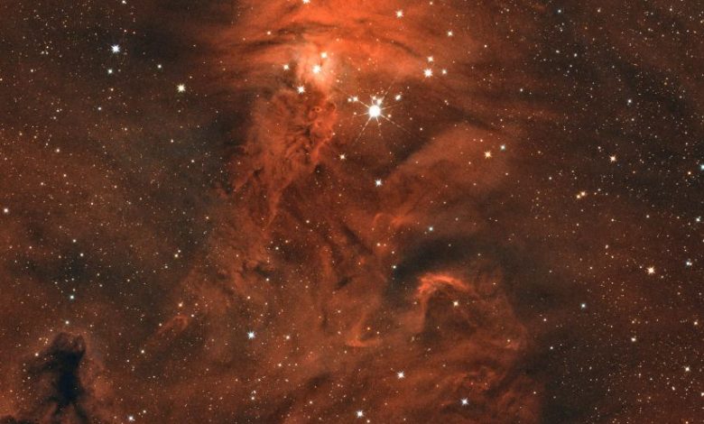 Este año quise representarlo de una forma distinta: no capté el rango verde tradicional, sino que, usando una cámara ZWO 2600 y procesado en PixInsight, busqué un árbol brillante en tonos dorados y naranjas, más cálidos y profundos.