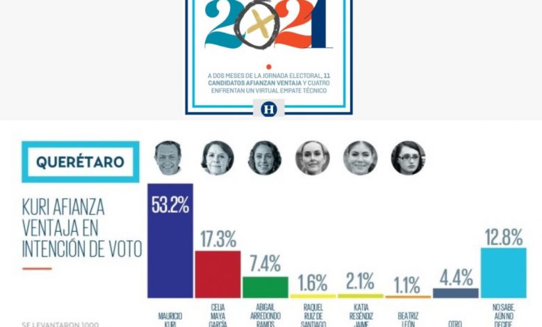De acuerdo con una encuesta del Heraldo de México, Mauricio Kuri González tendría una ventaja de casi 36 puntos porcentuales por encima de su más cercana competidora.