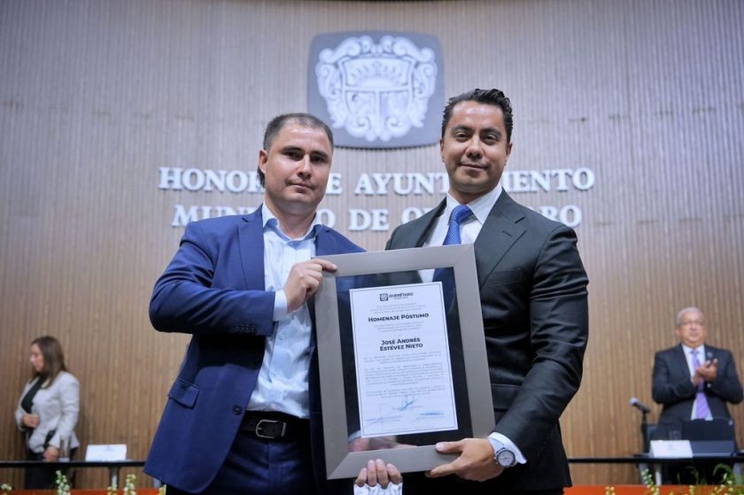 Finalmente, se rindió un homenaje póstumo a José Andrés Estévez Nieto, periodista queretano cuya trayectoria marcó la vida cívica y cultural del estado.