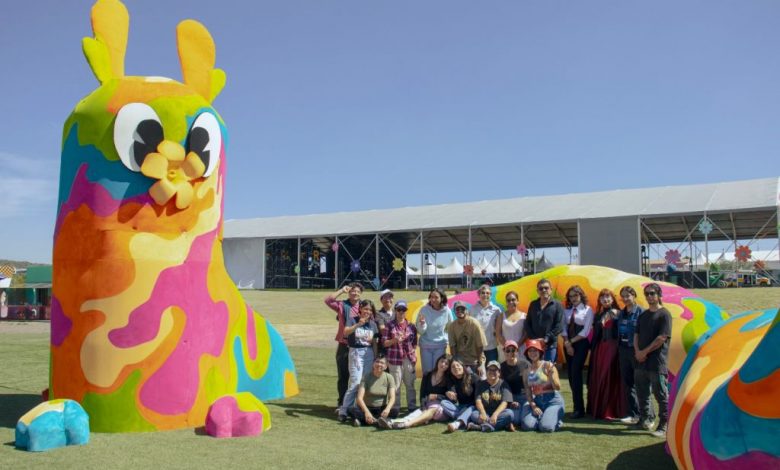 Como resultado, los universitarios dieron vida a “Dymas”, una escultura monumental que consta de tres piezas de carácter zoomórfico inspirada en el Drip Art y la animación Rubber Hose. Con ondas de color que remiten a las ondas de sonido, esta pieza busca fomentar la convivencia y la interacción con el público.