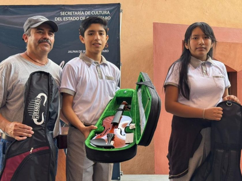La Secretaría de Cultura estatal reactivó el Programa de Formación de Niñas, Niños y Jóvenes Huapangueros en Jalpan de Serra, con la entrega de instrumentos a 108 beneficiarios.