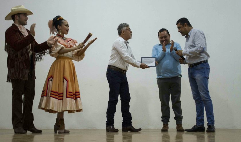 Arropado por integrantes de la Asociación de Maestros de Danza Popular Mexicana de los estados de Coahuila, Chihuahua, Tamaulipas, Sonora y Durango, quienes acudieron como ponentes al Foro, el docente neoleonés conocido también como “El Guerrero de la Danza” agradeció el reconocimiento.