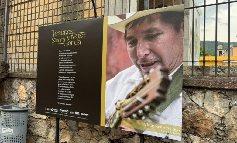 La titular de la SECULT afirmó que, con la exposición, la galería extramuros del Museo Histórico de la Sierra Gorda se convierte en un lugar de memoria, identidad y futuro, con las imágenes de 16 guardianas y guardianes de la tradición musical, la danza, el canto a lo divino, el son huasteco y arribeño.