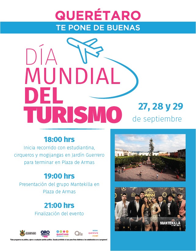 La secretaría de turismo del estado de Querétaro, invita a la ciudadanía en general, a celebrar el Día Mundial del Turismo, que se conmemora cada 27 de septiembre.