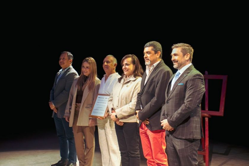 Posteriormente, la rectora de la UAQ, Dra. Silvia Amaya Llano, encabezó la entrega del Reconocimiento a la Trayectoria, junto al secretario de Extensión y Cultura Universitaria, Dr. Eduardo Núñez. Durante el acto, también se obsequió el libro “Pintores a escena”, de autoría compartida entre Franco Vega y la coreógrafa Bárbara Alvarado.