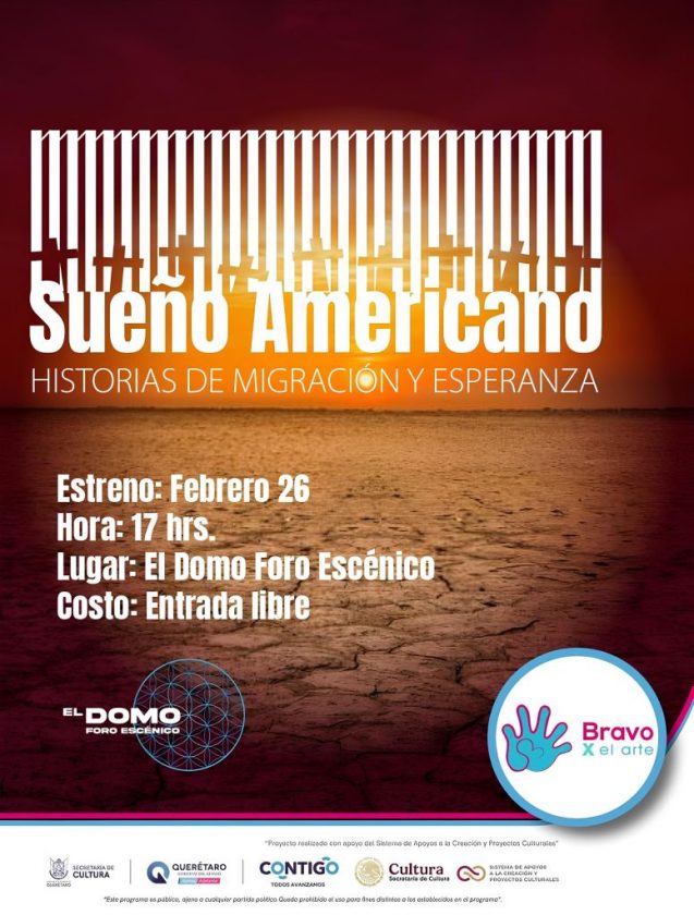 La colectiva Bravo por el Arte presentará el estreno de la obra “Sueño Americano. Historias de migración y esperanza”, un montaje escénico construido a partir de testimonios de familias migrantes y centrado en el cuerpo, la memoria y la experiencia comunitaria.
