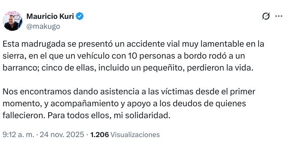 El gobernador Mauricio Kuri González manifestó su pesar en redes sociales. Informó que las autoridades brindan apoyo a los afectados desde el primer momento.