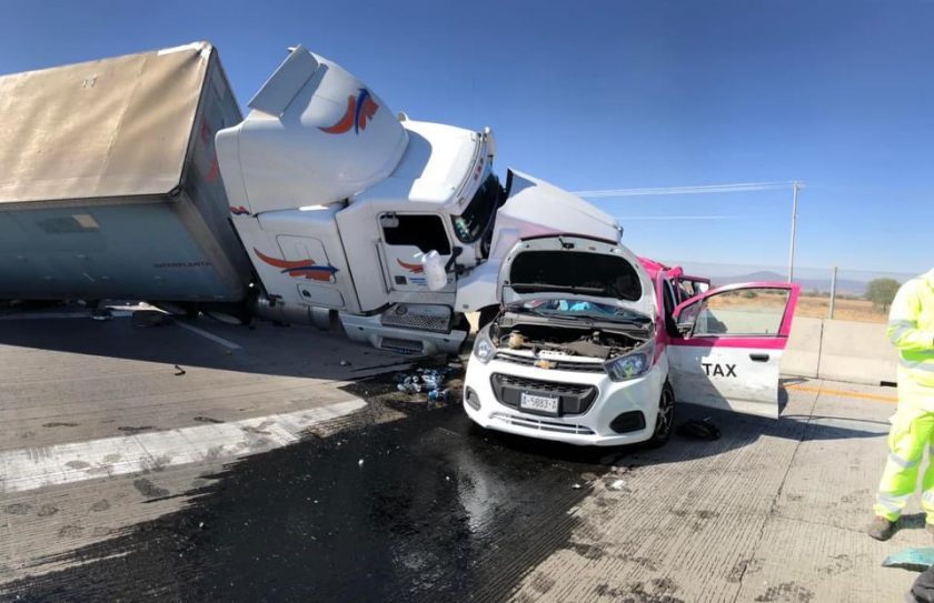 Servicios de rescate trabajan en accidente múltiple (carambola) en el que se vieron involucrados siete vehículos particulares y dos tractocamiones, esto en el Macrolibramiento Queretaro a la altura del kilómetro 56 en dirección a Palmillas.