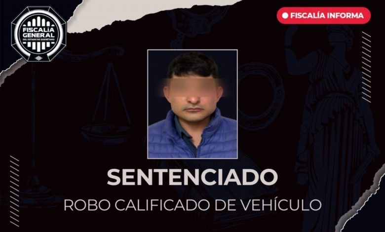 La Fiscalía General del Estado de Querétaro obtuvo sentencia condenatoria de 4 años y 6 meses de prisión contra Alexis “N”, por el delito de robo calificado de vehículo, por hechos ocurridos en el municipio de Pedro Escobedo.