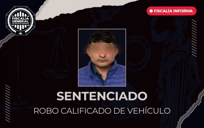 La Fiscalía General del Estado de Querétaro obtuvo sentencia condenatoria de 4 años y 6 meses de prisión contra Alexis “N”, por el delito de robo calificado de vehículo, por hechos ocurridos en el municipio de Pedro Escobedo.