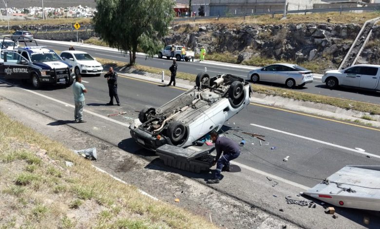 El conductor de una camioneta tipo Tornado, que se presume circulaba a exceso de velocidad sobre el libramiento surponiente a la altura de Pasteur, en dirección a Sta Bárbara, terminó por chocar contra la barra de contención, lo que provocó que volcara y terminara en carril de extrema izquierda.