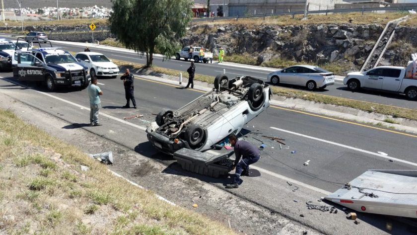 El conductor de una camioneta tipo Tornado, que se presume circulaba a exceso de velocidad sobre el libramiento surponiente a la altura de Pasteur, en dirección a Sta Bárbara, terminó por chocar contra la barra de contención, lo que provocó que volcara y terminara en carril de extrema izquierda.