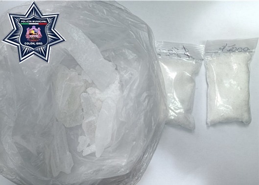 Tras un recorrido de vigilancia en la comunidad de La Peñuela, la Secretaría de Seguridad y Protección Ciudadana del municipio de Colón, logró el aseguramiento de un masculino que portaba varias bolsas de plástico transparente con sustancia cristalina con características similares a la mentafetamina «cristal».