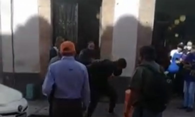 Un ataque con arma blanca y por la espalda se presentó esta mañana en el primer cuadro de la capital de Querétaro, en la esquina de Allende y Madero, en donde un sujeto bajo los influjos de alguna sustancia tóxica, arremetió contra la policía que se encontraba dialogando con otra persona.