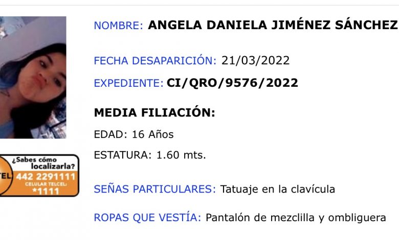 El 31 de marzo la Fiscalía General del Estado de Querétaro recibió la denuncia por la no localización de la adolescente, 10 días después de la última vez que fue vista por su mamá