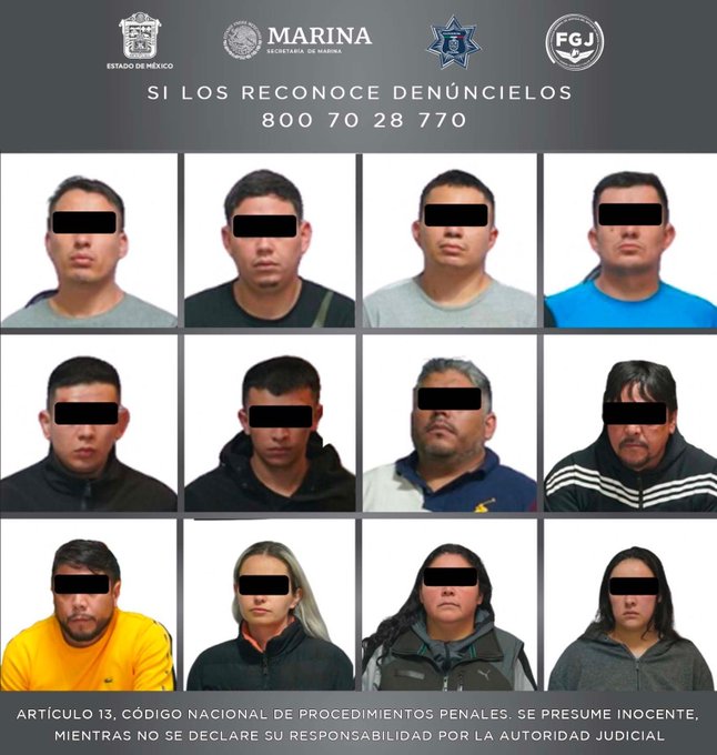 La Fiscalía General de Justicia estatal del Estado de México (FGJEM), en colaboración con la Secretaría de Marina (SEMAR) y la policía municipal de Atizapán, ha logrado la detención de 12 individuos que formaban parte de un grupo delictivo dedicado al robo a casa habitación con violencia, tanto en municipios mexiquenses como en el estado de Querétaro. Se destaca que seis de los detenidos son de nacionalidad colombiana.