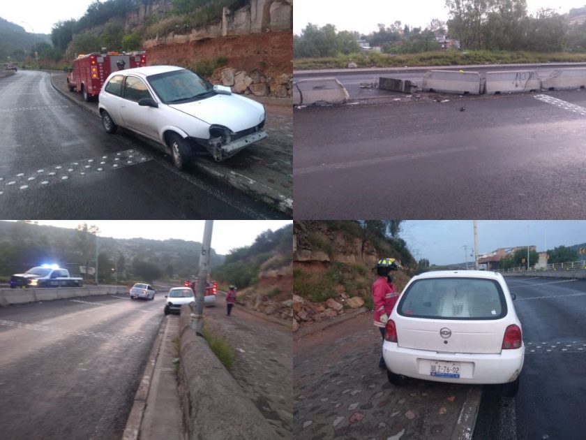 Policías estatales tomaron conocimiento del hecho de tránsito, ya que dos de la barras de contención de concreto quedaron obstruyendo el carril en sentido contrario