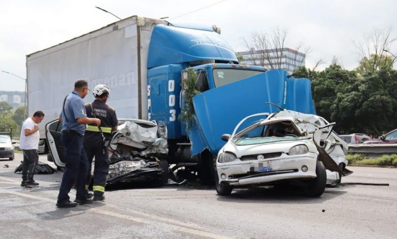 Camión sin frenos choca a 14 vehículos en la México-Querétaro; hay una persona fallecida