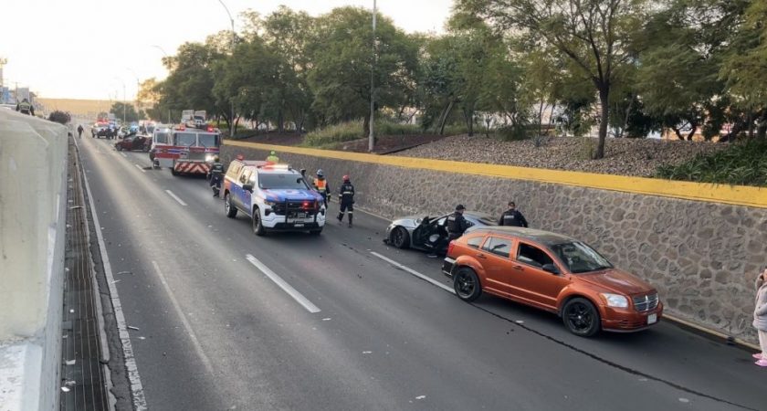 Esta mañana se registró una carambola que involucró a cinco vehículos sobre los carriles centrales del Blvd Bernardo Quintana, justo antes de Los Arcos, en dirección al norte. El choque múltiple dejó como saldo una persona trasladada al Hospital General en código amarillo, mientras que tres más fueron valoradas en el lugar sin requerir hospitalización.