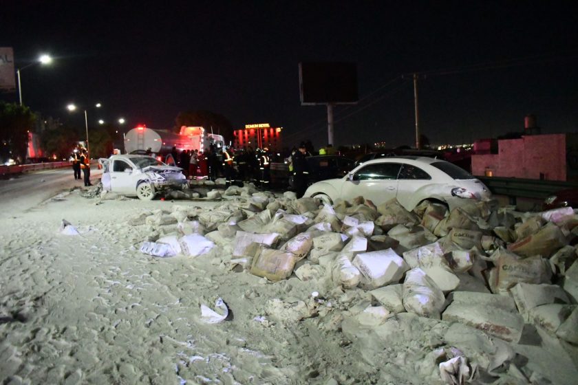 En el lugar se vieron involucrados 7 vehículos particulares más dos trailers, una pipa de agua y otro que transportaba bultos de cal, los cuales debido a la velocidad y del impacto con los otros siete vehículos, los bultos quedaron regados en carriles centrales, además de haber golpeado la carrocería de varios de ellos.
