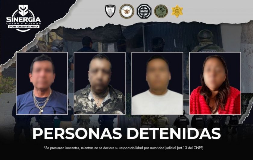 Como resultado de los operativos, fueron detenidas cuatro personas —tres hombres y una mujer—, quienes quedaron a disposición de la autoridad competente para determinar su situación jurídica.