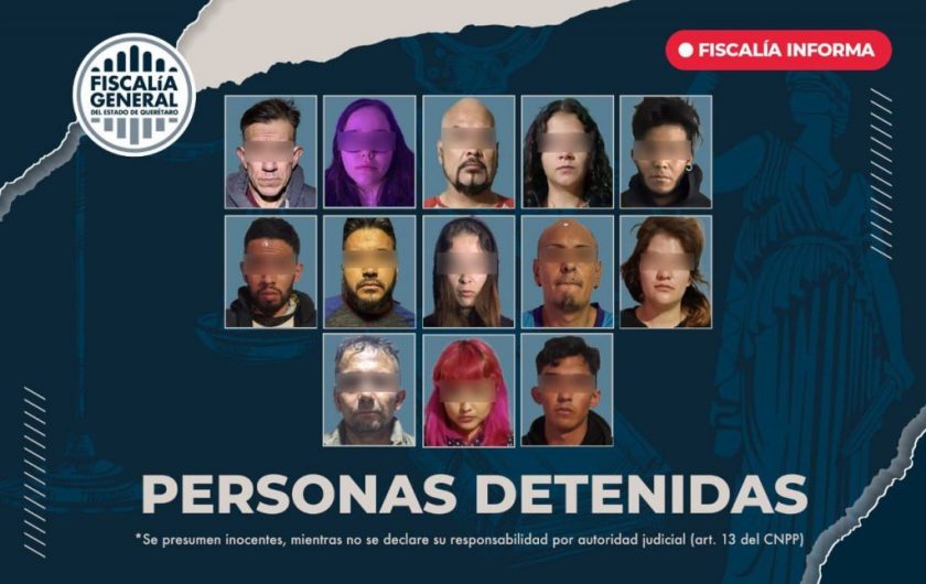 La Fiscalía General del Estado de Querétaro, en coordinación con elementos de la Policía Estatal, ejecutó 5 cateos simultáneos derivados de investigaciones por delitos contra la salud en las colonias Reforma Agraria y La Popular, del municipio de Querétaro; como resultado de las diligencias se logró la detención de 13 personas, quienes fueron puestas a disposición para resolver su situación jurídica.