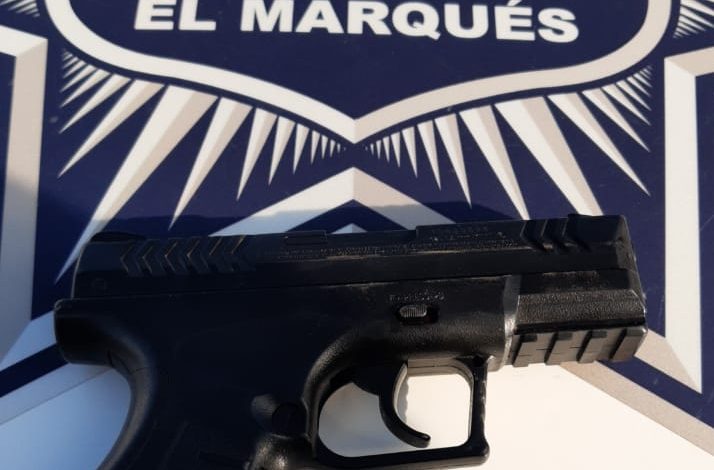 En su intento de eludir a la autoridad, perdieron el control de la unidad e impacta el vehículo contra la patrulla, realizándose la detención de Pablo “N”, de 26 años de edad y Gabriela “N”, de 28 años de edad, a quienes se le asegura un arma de fuego tipo escuadra, con la leyenda XBG calibre 4.5 mm.