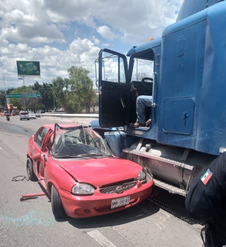 capital de Querétaro, se registró un choque entre un 5ta Rueda y un Chevrolet Chevy, con placas para el EdoMex, sobre carriles centrales de 5 de Febrero a la altura del puente de Constituyentes, en dirección al norte.