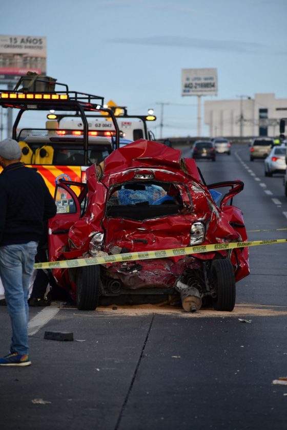 Antes de las 6 de la mañana de este domingo, se registró un fuerte choque por alcance entre una unidad pesada y un Nissan March con placas para Querétaro, sobre centrales de la carretera 57, km 201, en dirección a la capital de Querétaro.