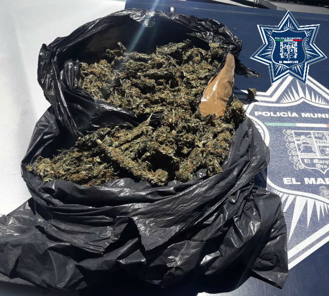 En la comunidad de El Colorado, El Marqués, policías municipales le marcaron el alto a un motociclista cuando circulaba por Camino Real de La Piedad, al hacerle una revisión de rutina, le fue localizada una bolsa de plástico cuyo contenido era hierba verde seca, similar a la marihuana.
