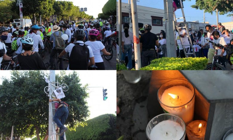Asociaciones de ciclistas se dieron cita al rededor de las 6 de la tarde en el Cerro de las Campanas, para después trasladarse en caravana hasta el punto del accidente y colocar alguna velas, brindarle un aplauso y colocar la bici blanca en su honor.