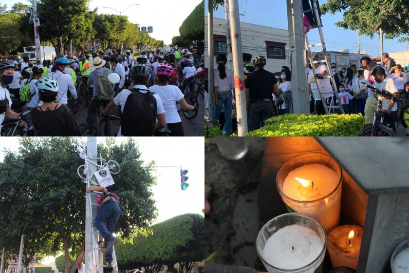 Asociaciones de ciclistas se dieron cita al rededor de las 6 de la tarde en el Cerro de las Campanas, para después trasladarse en caravana hasta el punto del accidente y colocar alguna velas, brindarle un aplauso y colocar la bici blanca en su honor.