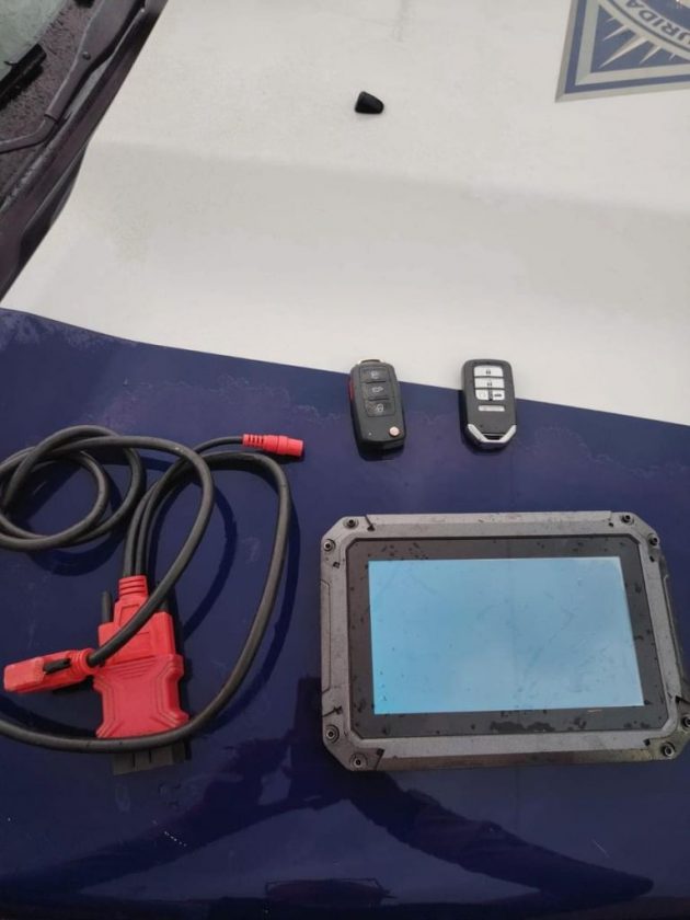 En la revisión del masculino, se le localizó un aparato que presuntamente utilizó para clonar la llave y dos llaves; fue puesto a disposición de la Fiscalía para determinar su situación jurídica.