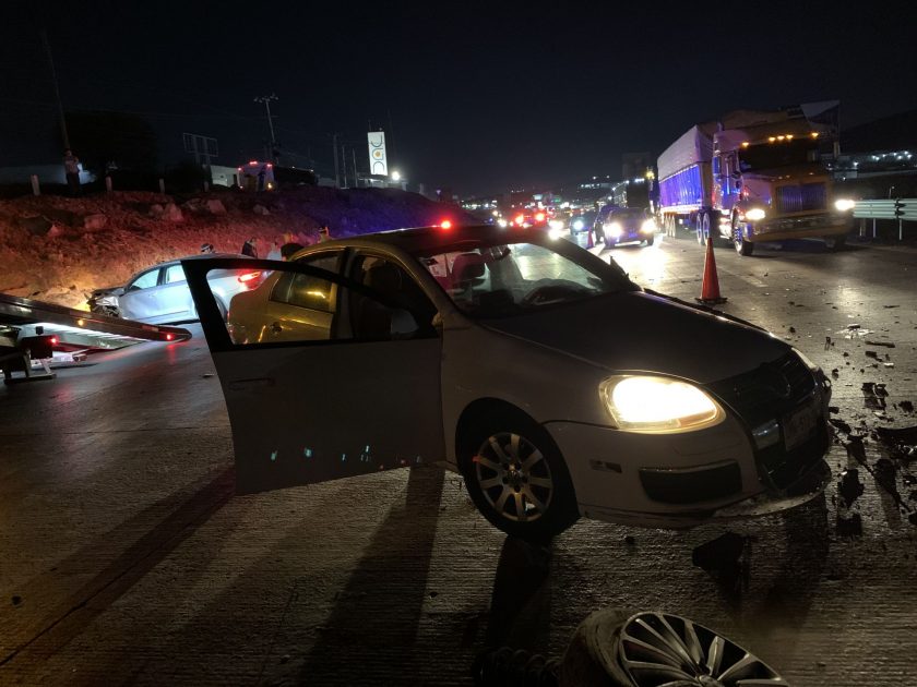 Durante los primeros minutos de este domingo, se registró un choque frontal sobre la carretera 57, km 199+500 en dirección a Querétaro, entre el conductor de un VW Passat que circulaba en contra flujo desde el puente de la Fiscalía, hasta el punto donde se topó de frente contra el conductor de un VW Bora con placas para Querétaro.