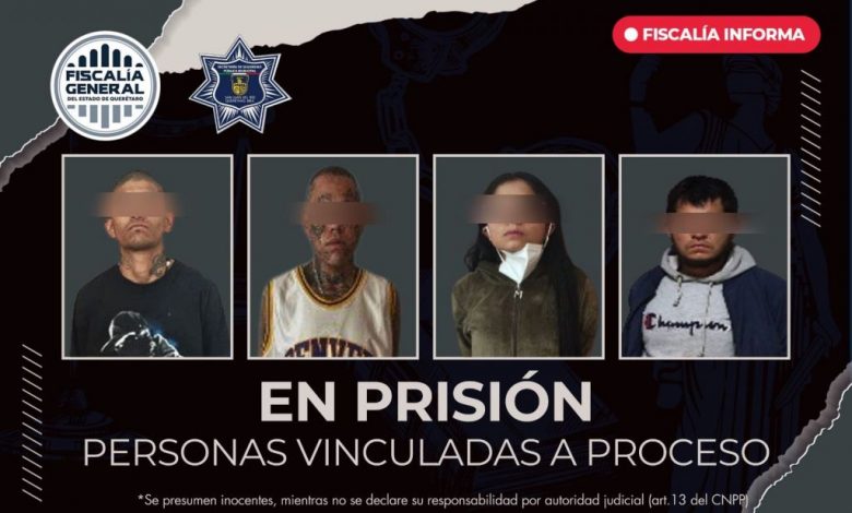La Fiscalía de Querétaro obtuvo la vinculación a proceso de tres hombres y una mujer, por su probable intervención en el delito de robo calificado, cometido en San Juan del Río.