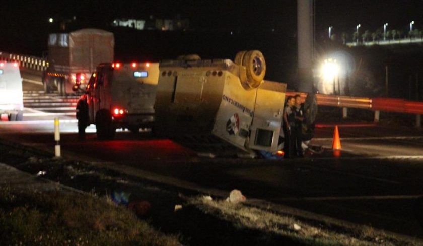 La volcadura de un camión de valores en la autopista 57, a la altura de la Cuesta China, dejó como saldo un custodio muerto y uno más herido de gravedad, y dos más que no necesitaron traslado hospitalario.