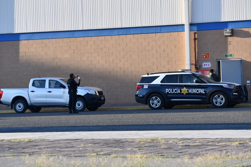 Policías municipales de la capital toman conocimiento del robo a la tienda departamento de Sam’s Plaza de Toros, ubicada en la colonia Las Granjas, en la lateral de la carretera Celaya cuota.