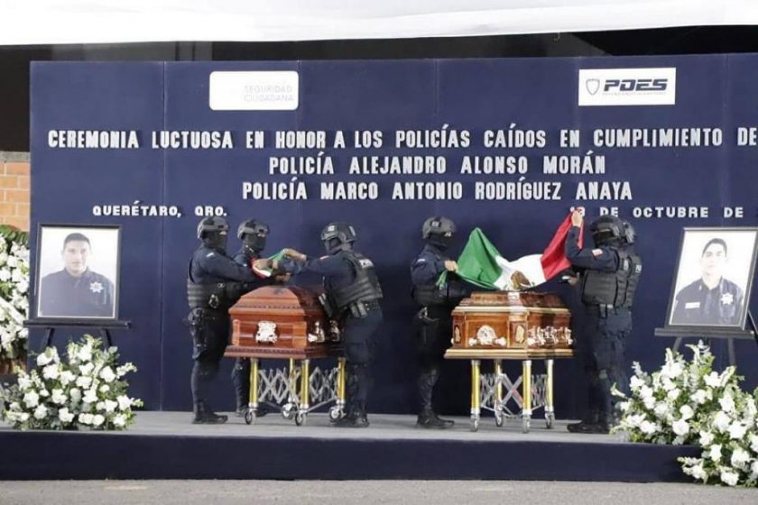 Se llevó a cabo la ceremonia luctuosa en honor a los policías Alejandro Alonso Morán y Marco Antonio Rodríguez Anaya, quienes integraban las filas de POES Querétaro y perdieron la vida este miércoles, defendiendo Querétaro.