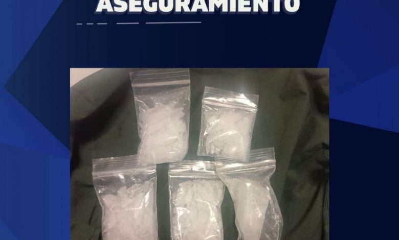 Al marcarle el alto, el conductor intentó darse a la fuga, iniciando así una breve persecución que concluyó con su aseguramiento. Durante la inspección al vehículo, los oficiales localizaron bolsas con sustancias con características similares al cristal.