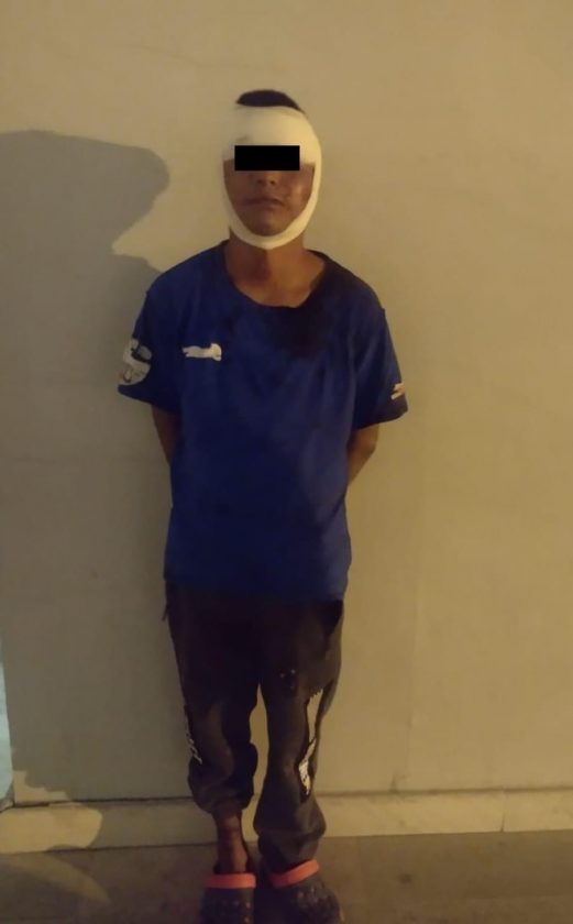 Al llegar al lugar, el personal operativo observó al masculino referido, quien le había causado una lesión en el antebrazo a su madre, motivo por el cual se realizaron las maniobras necesarias para detenerlo.